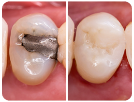 Many adults have silver amalgam fillings that are worn out, discolored, cracked, or that they simply want to replace with more natural-looking fillings. Our dentists can replace your silver fillings with natural-looking, tooth-colored composite resins. These sophisticated resins are strong, esthetically pleasing, do not discolor over time, and have similar expansion and contraction rates to normal tooth structure. We offer local anesthesia to minimize discomfort for our patients during filling replacements.
